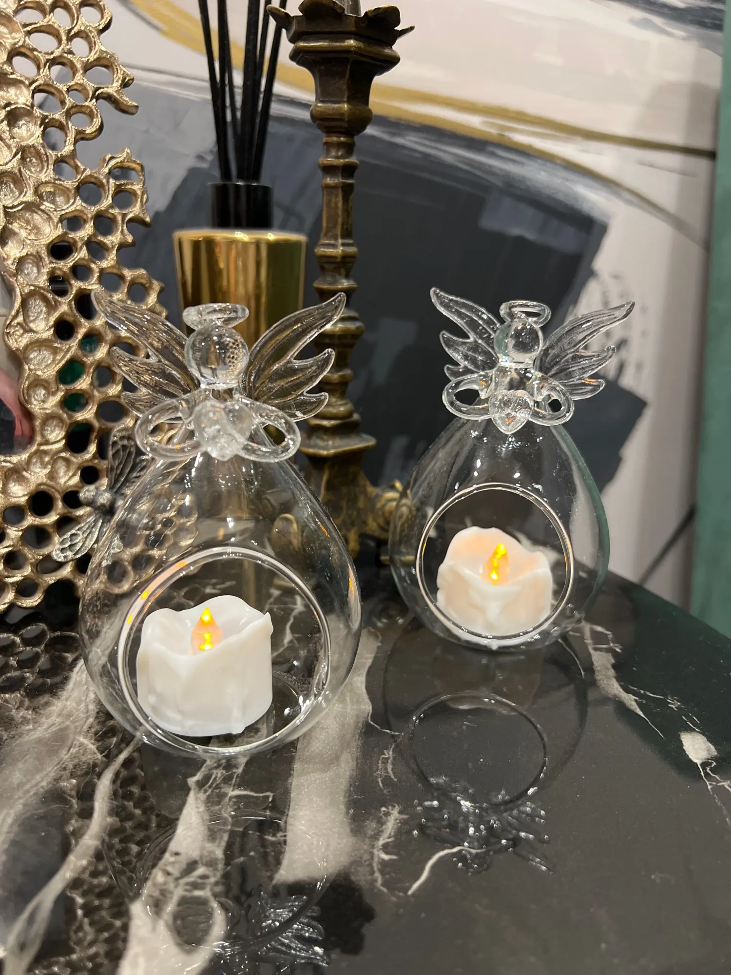 Creative Angel Glass Crystal Hanging Light Candle